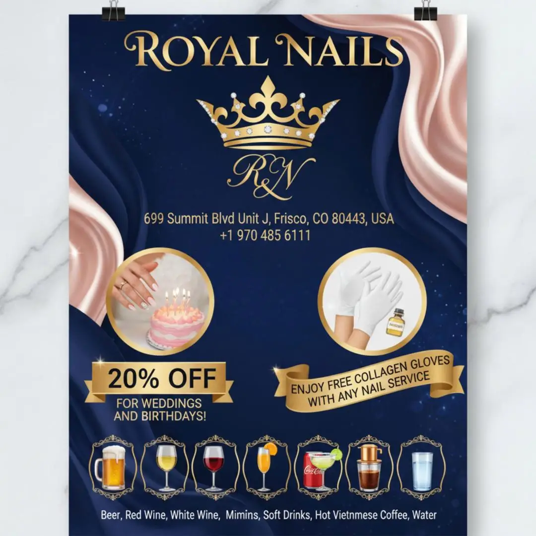 Welcome to Royal Nails, a sophisticated haven where elegance, craftsmanship, and relaxation come together in perfect harmony. From the moment you step inside, you are welcomed into an atmosphere designed to soothe the senses—where soft lighting, refined décor, and attentive service create an experience worthy of true royalty.